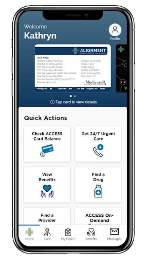 The Alignment Health Plan member app is your secure mobile gateway to your health information. In conjunction with ACCESS On-Demand Concierge, our newest program offering all members a concierge health care experience, our app is designed to make your health care accessible anywhere, at any time.