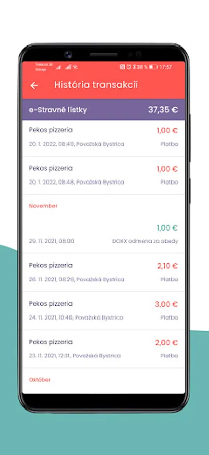 • A free online account is available on the website https://doxxlistky.sk/#drzitel-karty to manage and control the DOXX Card. with options: current balance and validity of electronic products, overview of payments and transactions, possibility to change PIN, block card, set up e-mail notification, transfer between cards and more.