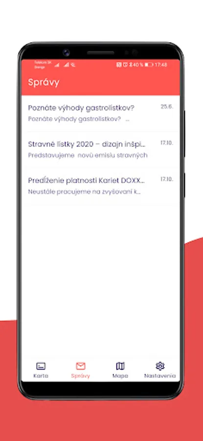 A modern application for using electronic employee benefits from the Slovak company DOXX - Food stamps.