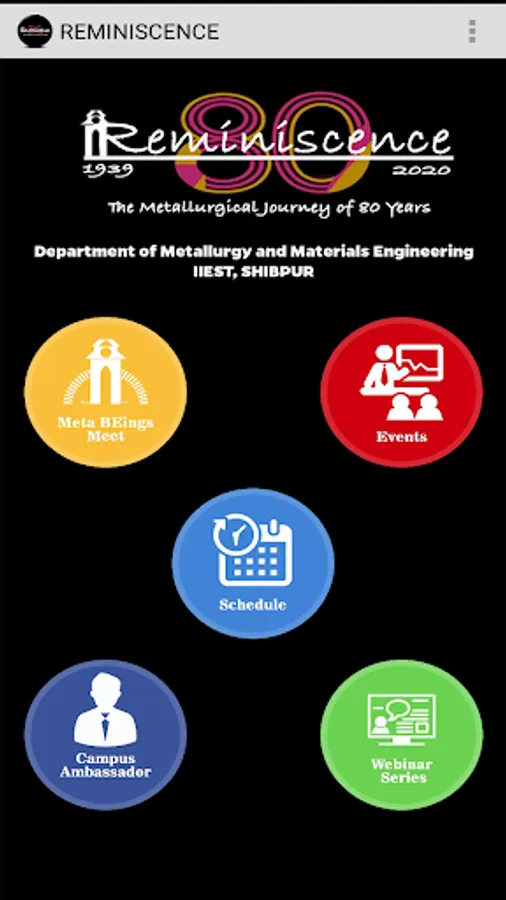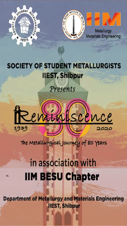 Reminiscence-The Metallurgical Journey of 80 years shall be IIEST Shibpur’s first and the grandest online celebratory event commemorating the 80th anniversary of the Department of Metallurgy and Materials Engineering. Organised by the Society of Student Metallurgists-IIEST Shibpur, in association with the IIM (Indian Institute of Metals) BESU chapter, the event will fold over 6 days, from 20th to 25th July 2020, and involve multiple technical and non-technical events, cultural programs, and a webinar series by eminent personalities from varied walks of life. Harnessing the power of webinars during this pandemic, we will showcase the students expertise, explore their talents while providing an informative network to help them learn new skill and knowledge likewise. Team Reminiscence strives for a virtual reunion for all the people associated with our department over the years and finally an online farewell bidding goodbye to our class of 2020.