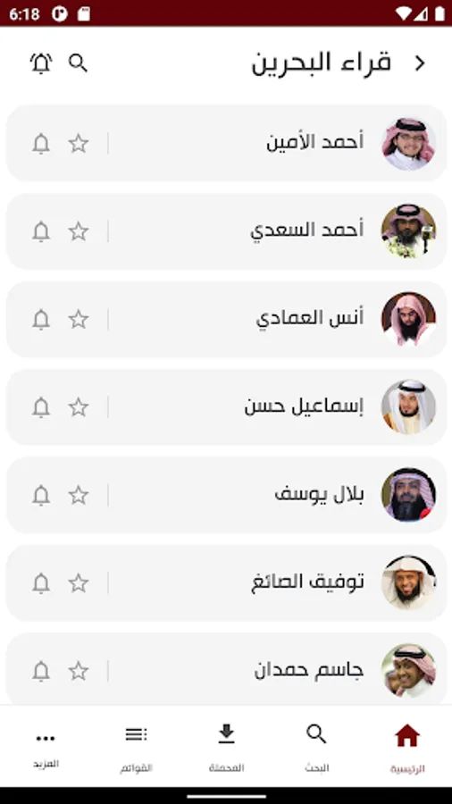 - إمكانية تفعيل التنبيهات واستلام إشعارات عند توفر تلاوات جديدة للقراء المفضلين بحسب اختيار المستخدم.
