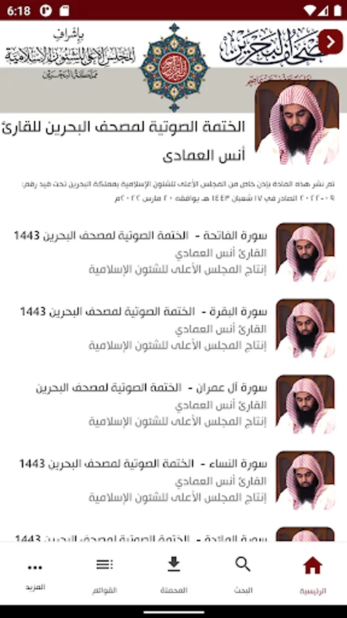 أول تطبيق يعنى بكل ما يتعلق بقراء القرآن الكريم بمملكة البحرين مِن تسجيلات صوتية ذات جودة عالية.