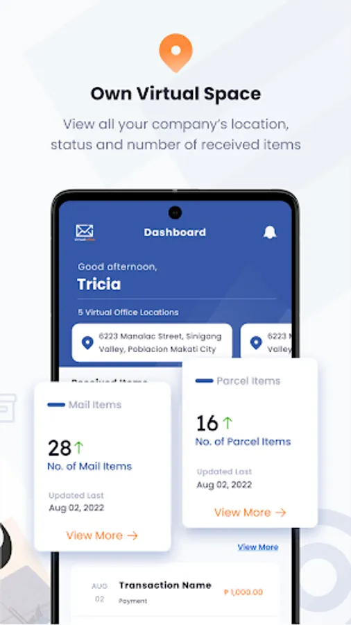 - Create your own virtual space for your business with VirtualOffice. Have your business registration, mail and parcels handling and other business requirements accomplished **all in one application.** The VirtualOffice application offers: