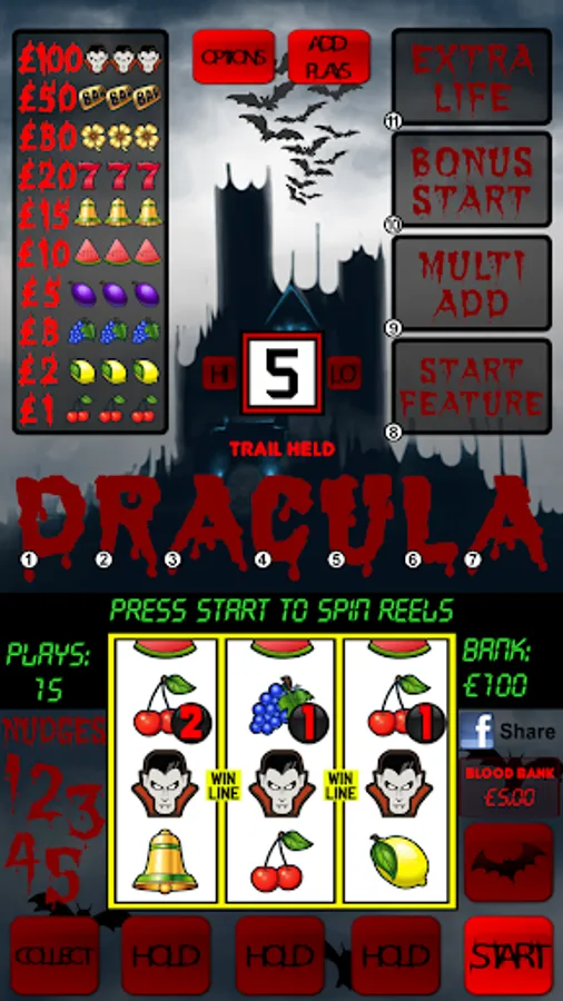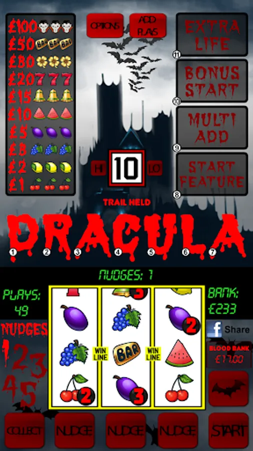 Dracula Fruit Machine is a fully featured UK style pub fruit slot machine that plays just like the classic local pub gambler.