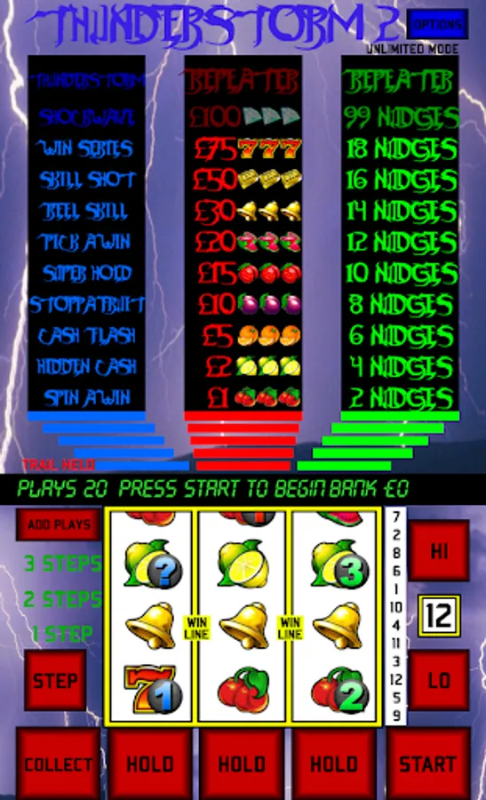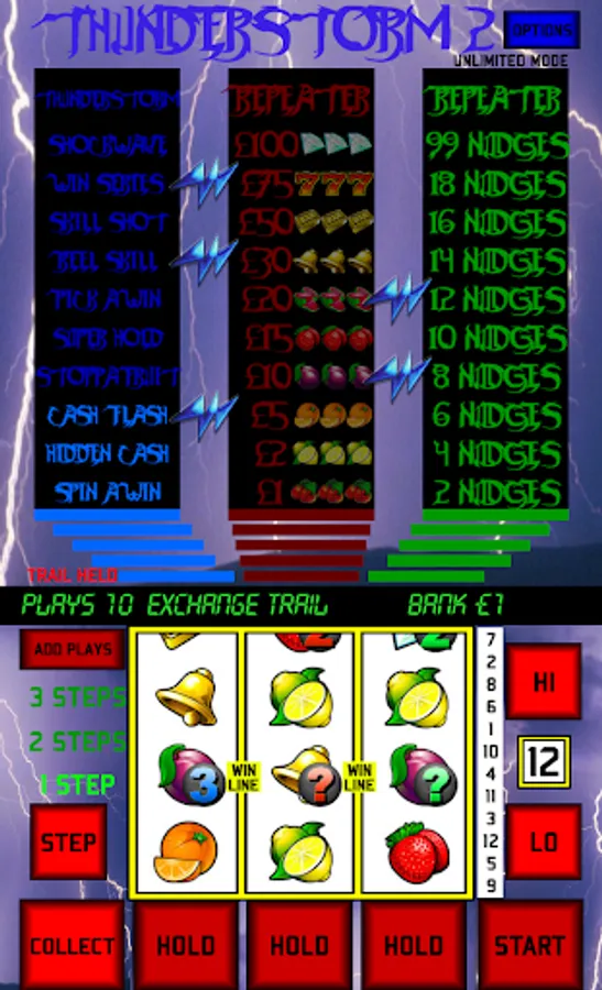 Thunderstorm 2 is a fully featured UK style pub fruit slot machine that plays just like your local pub gambler.