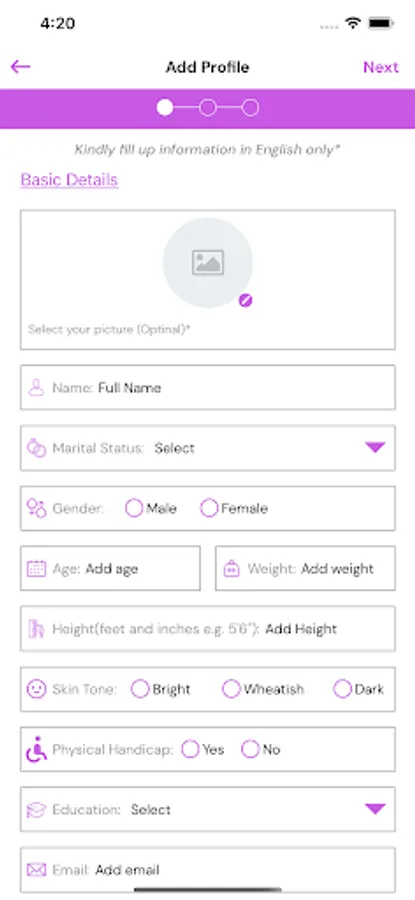 ==> After creating profile, it will be verified by experts, then it will be visible to other members of the app.