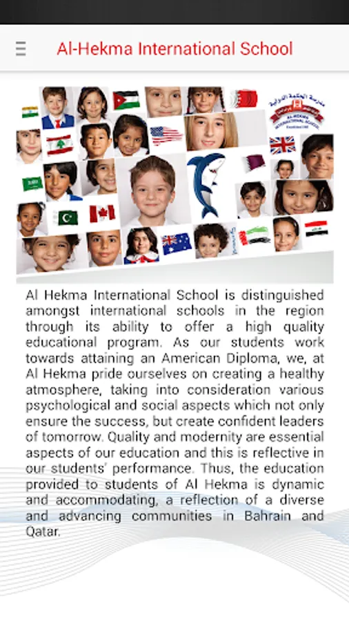 Al Hekma International School is distinguished amongst international schools in the region through its ability to offer a high quality educational program. As our students work towards attaining an American Diploma, we, at Al Hekma pride ourselves on creating a healthy atmosphere, taking into consideration various psychological and social aspects which not only ensure the success, but create confident leaders of tomorrow. Quality and modernity are essential aspects of our education and this is reflective in our students' performance. Thus, the education provided to students of Al Hekma is dynamic and accommodating, a reflection of a diverse and advancing communities in Bahrain and Qatar.
