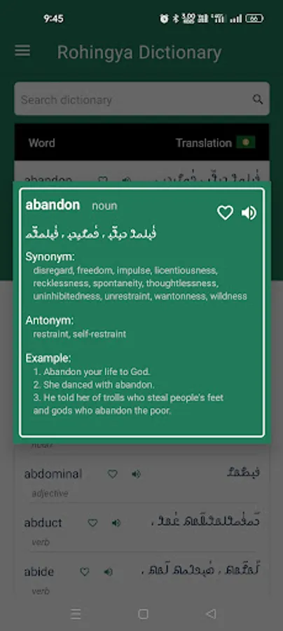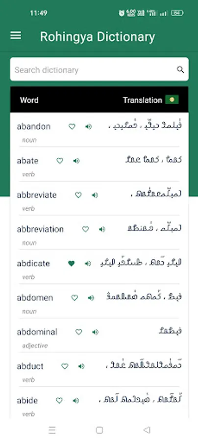 The translation of the Rohingya language is ongoing and many more words will be added in the future. If you are Rohingya and know Hanifi , Please help us to translate more words. Your contribution will be highly appreciated.