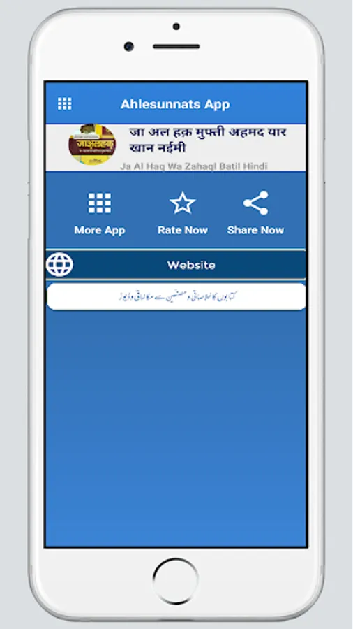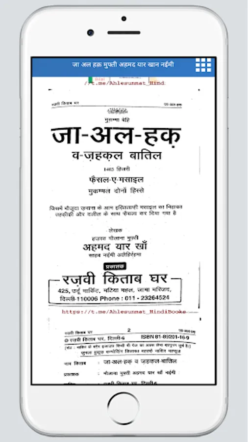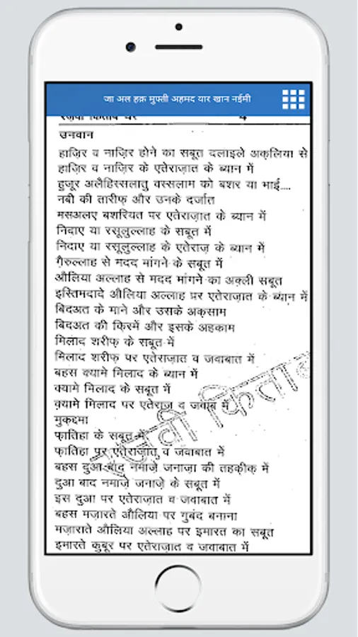 This application contains a book of Mufti Ahmed Yaar Khan Naeemi, name is Ja Al Haq Hindi book. A Famous Book on Beliefs of AhleSunnah. Written by Hakeem Ul Ummat Mufti Ahmed Yaar Khan Naeemi (رحمۃ اللہ علیہ).