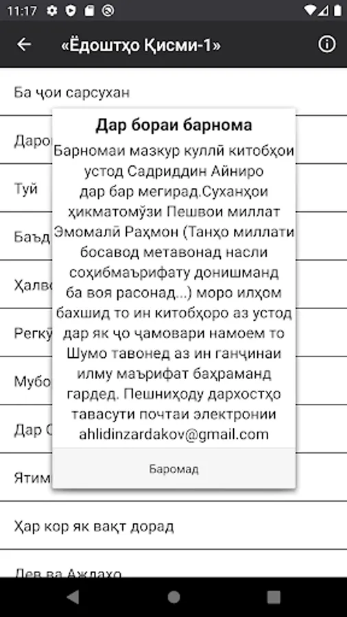 Barnomai mazkur kitobhoi zerinro dar bar megirad!