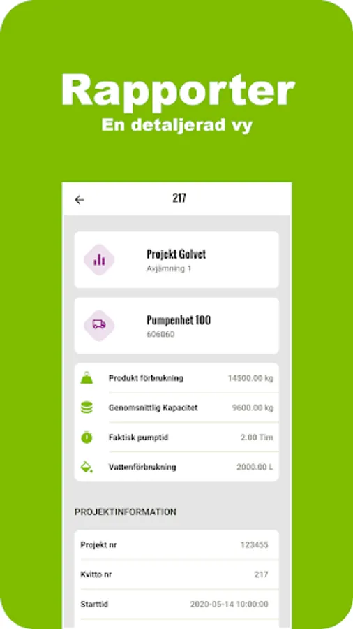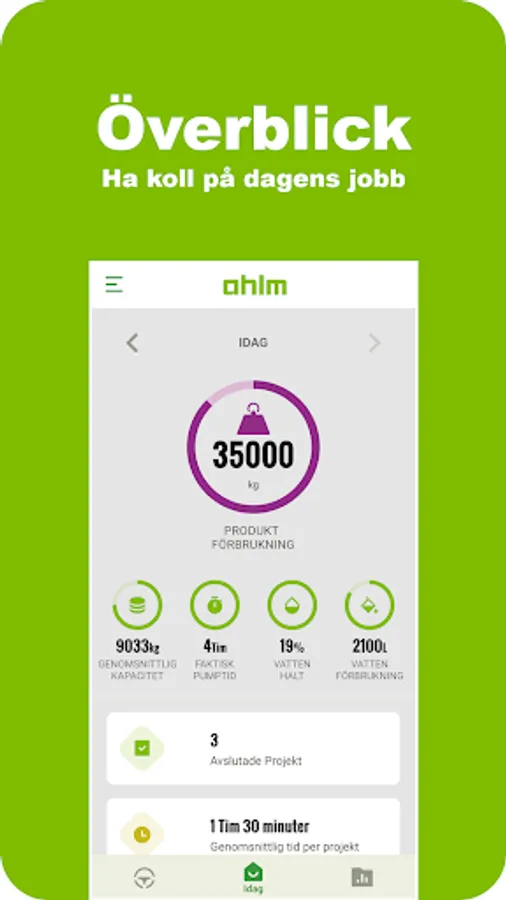 Varje gång en Ahlm pumpenhet utför ett jobb kan du få tillgång till ett antal mätpunkter i digitalt format i appen. Statistik i ett enkelt gränssnitt helt enkelt.