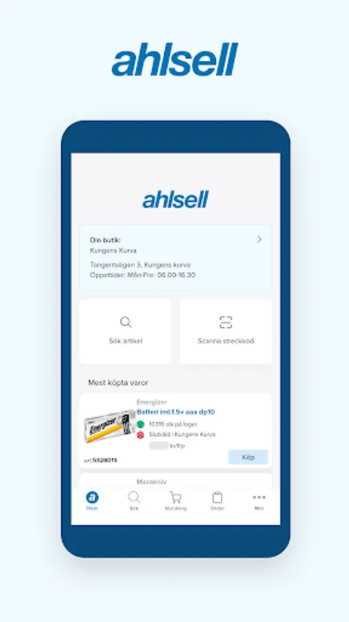 The app is only available to existing customers in Ahlsell who have created a user for the online store on ahlsell.se.
