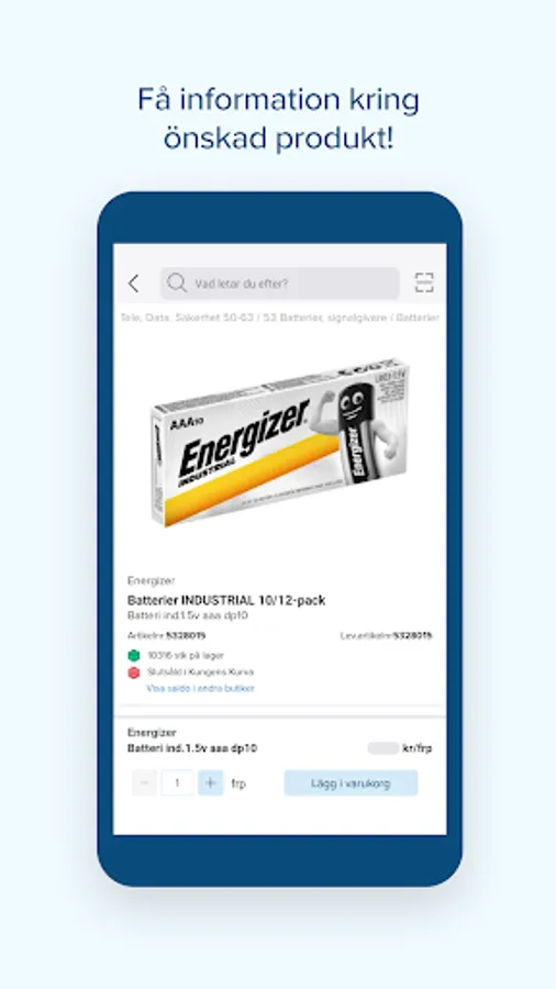 • The search result shows you immediate stock status in your Ahlsell store and in central warehouse as well as your price on the item.