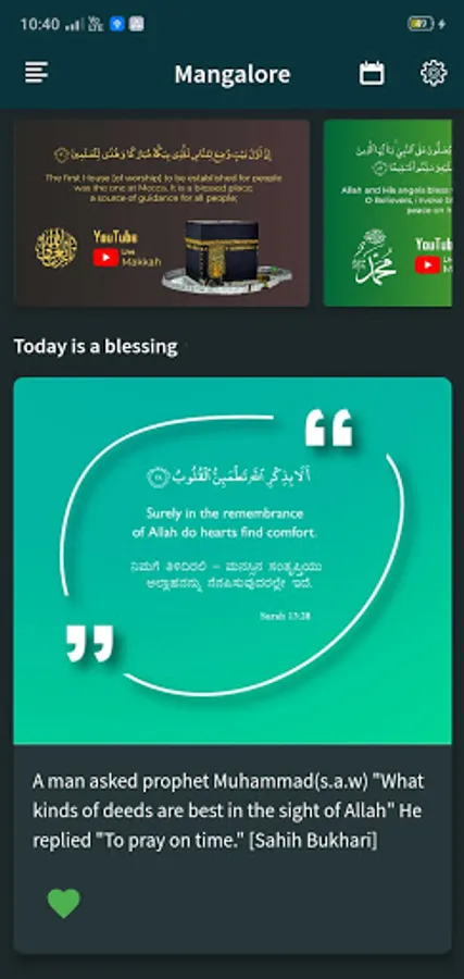 In order to show the perfect azaan times for mangalore and udupi regions we made this app. This application also includes makkah and madina live stream using you tube api