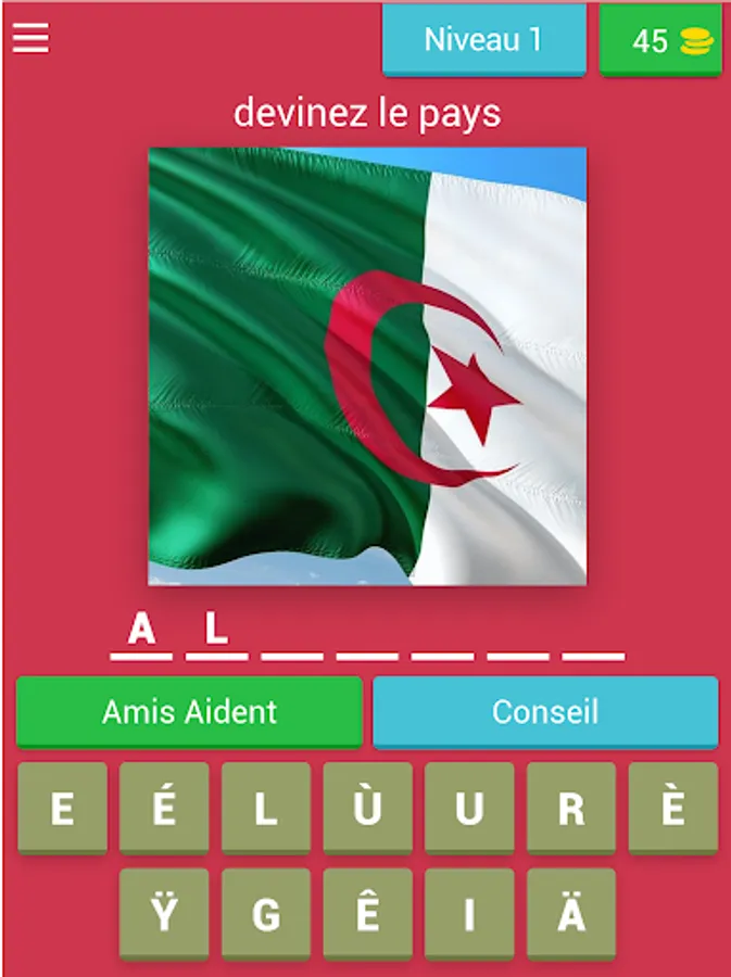 The name of the country from the picture of the flag, the challenge of guessing the names of the countries from the picture of its flag is a fun game that can be played with friends,The way to play the game is easy. All the player has to do is write the word - the answer - in classical Arabic to answer the question on the map The application can also be shared with family and friends on social networking sites, and help to solve the puzzle can be obtained through hint or friends.