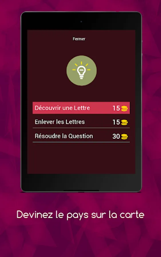 The way to play the game is easy. All the player has to do is write the word - the answer - in classical Arabic to answer the question on the map. The application can also be shared with family and friends on social networking sites, and help to solve the puzzle can be obtained through hint or friends.