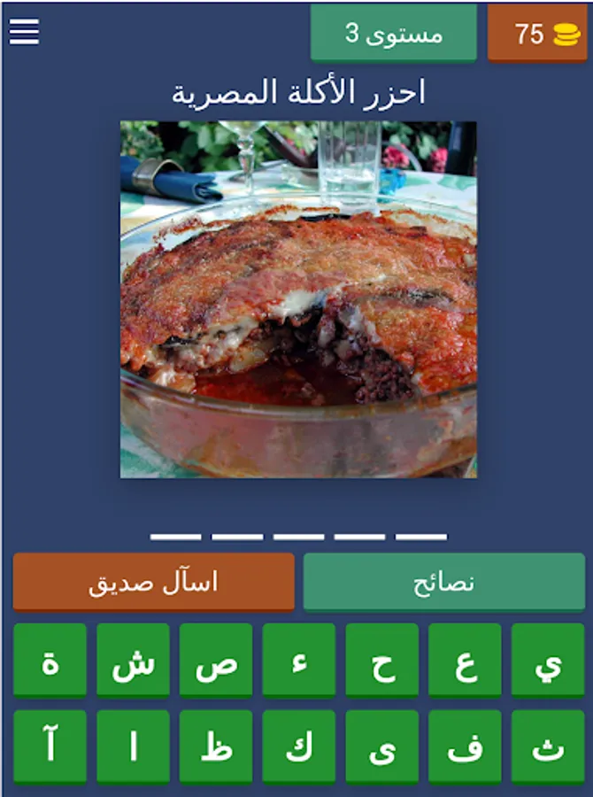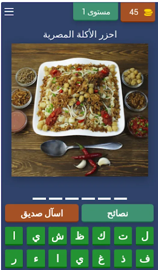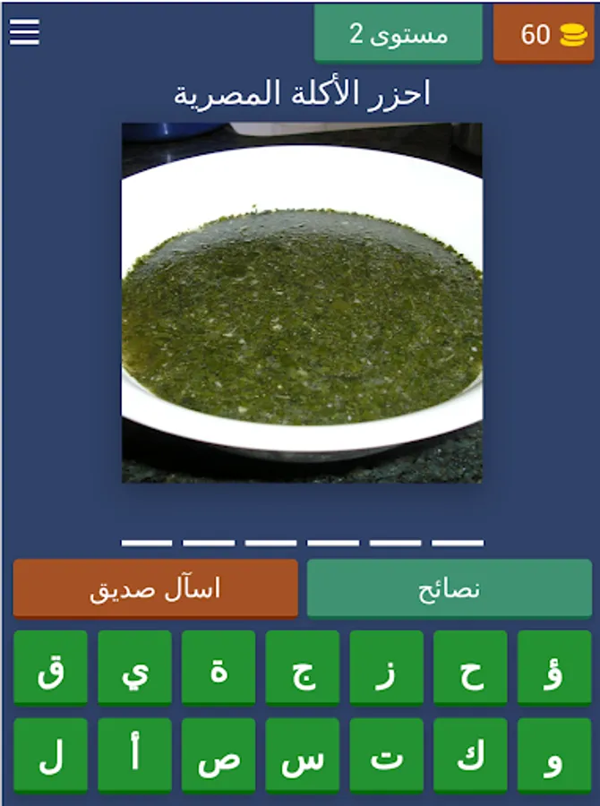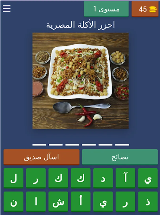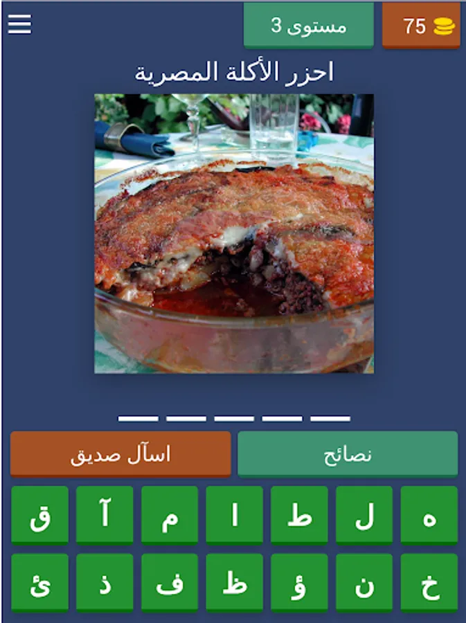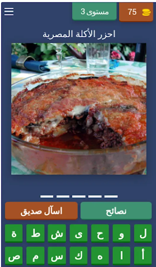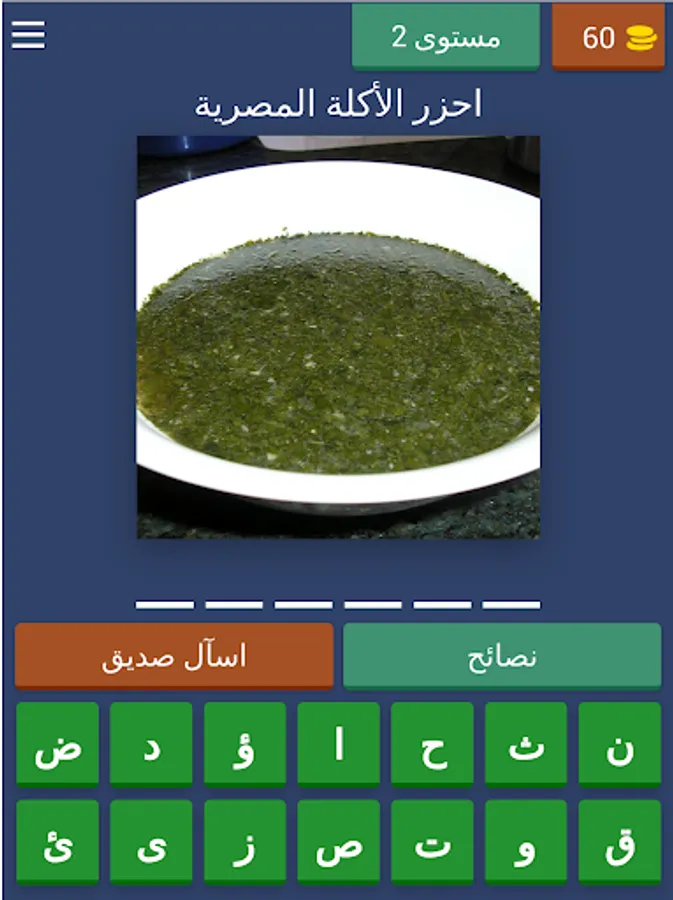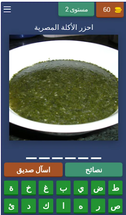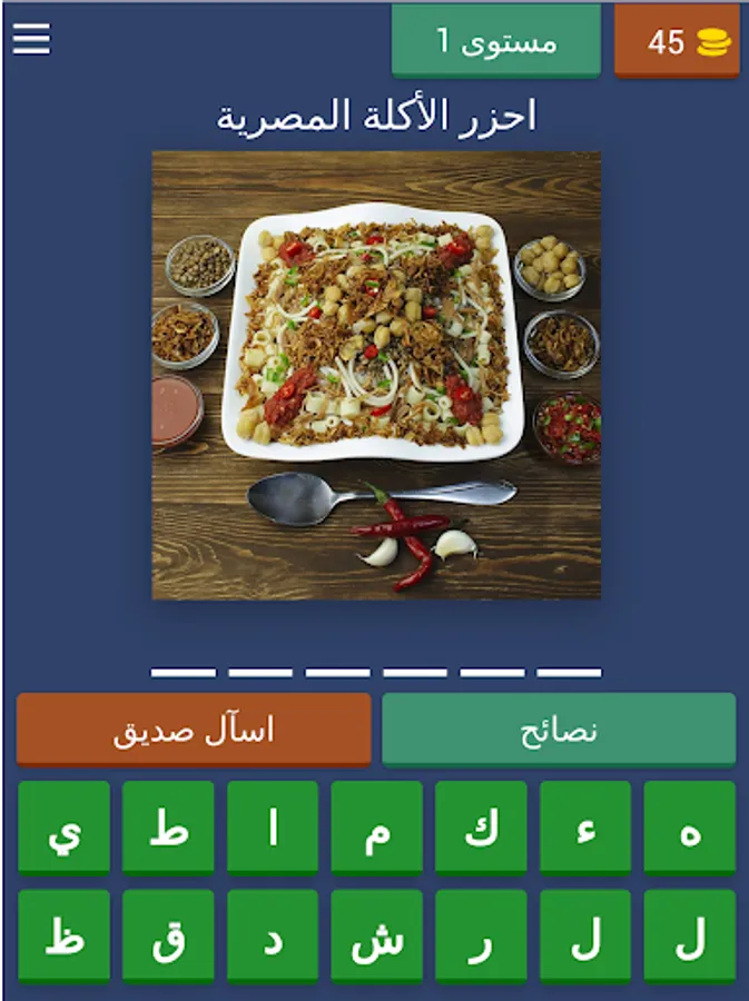 Sama Challenge of the Famous Egyptian Cuisine" application is an entertaining and challenging game, where pictures of the most famous Egyptian dishes are presented, and the challenge is to collect the letters that are available in each stage to form the correct word that describes the displayed Picture This application can be considered as a great opportunity to enjoy a fun experience and learn about Egyptian cuisine in an enjoyable and interesting way.