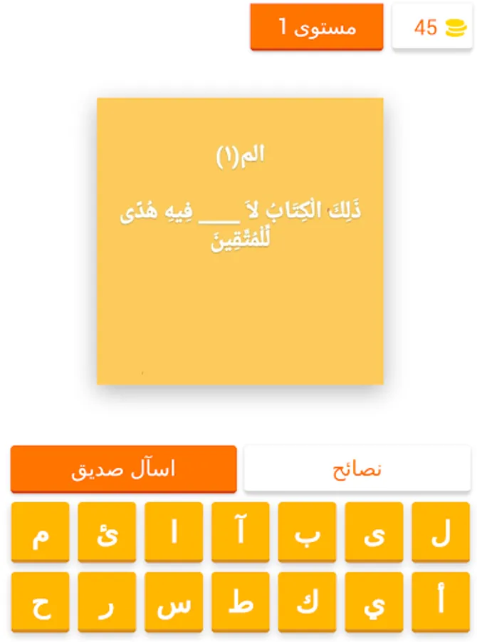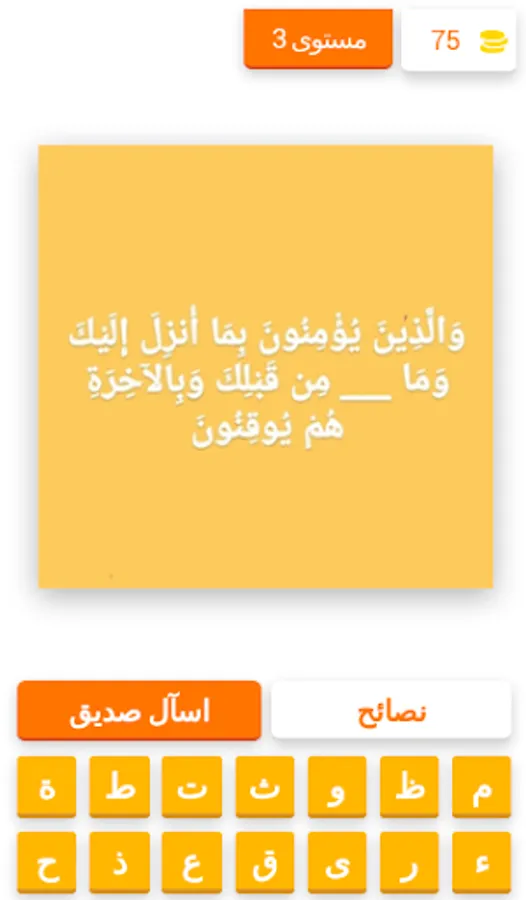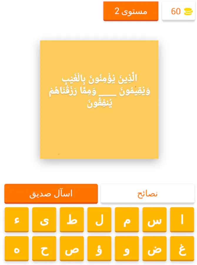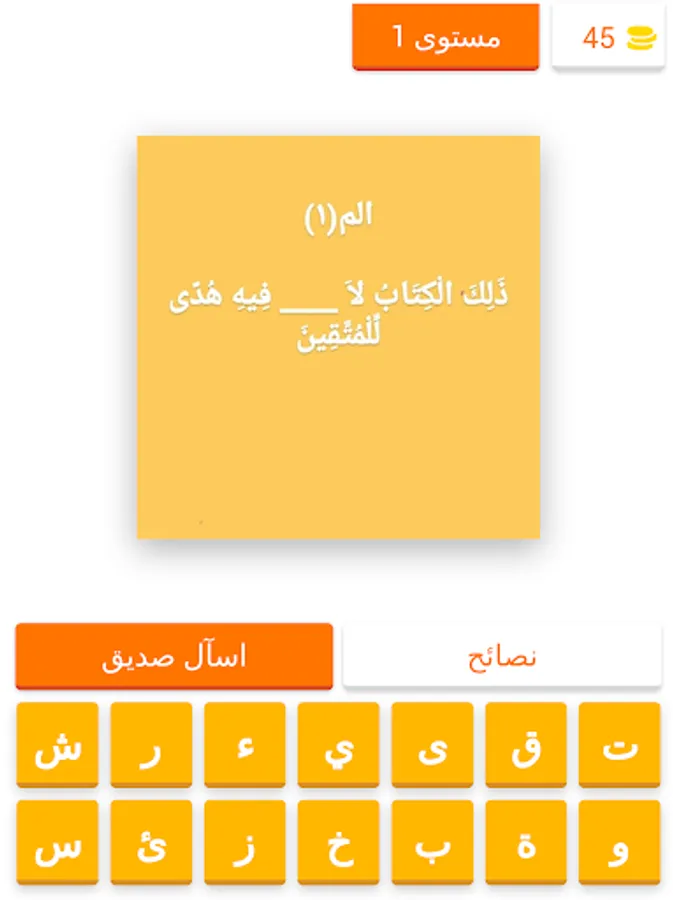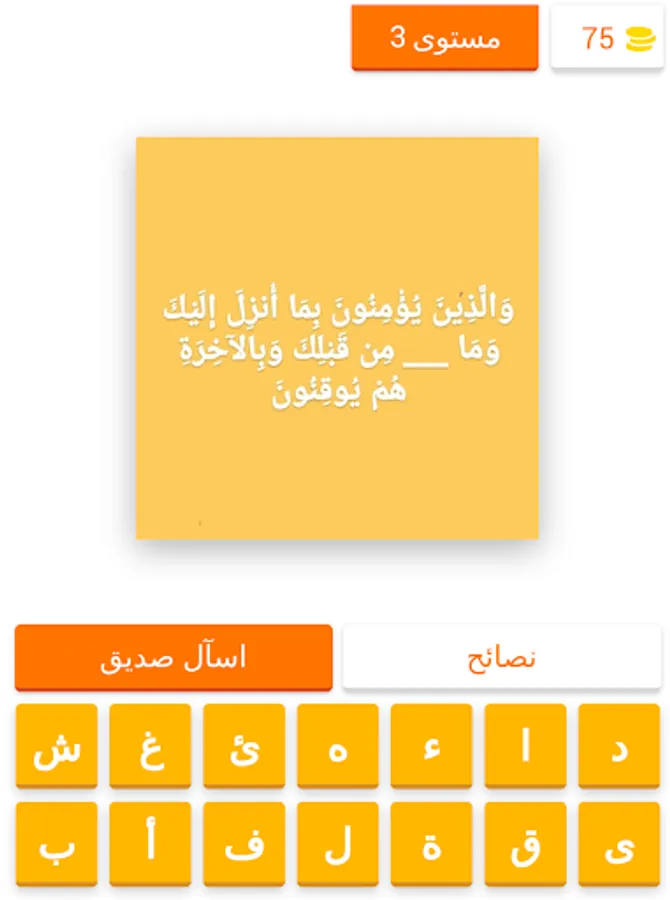 A fun game that can be played with friends. The way to play the game is easy. All the player has to do is write the word - the answer - in classical Arabic to answer the question of the verse. The application can also be shared with family and friends on social networking sites. Help can be obtained to solve the puzzle by Hunt ( hint ) or friends.