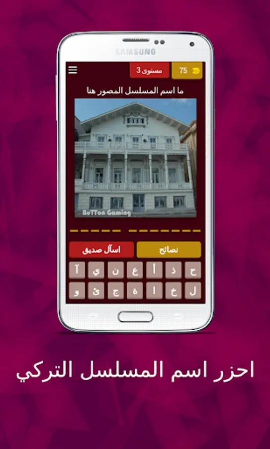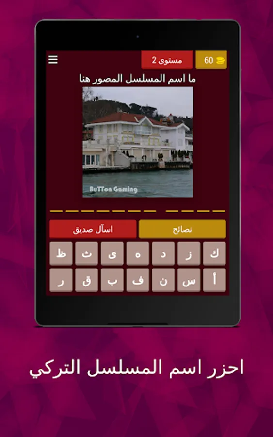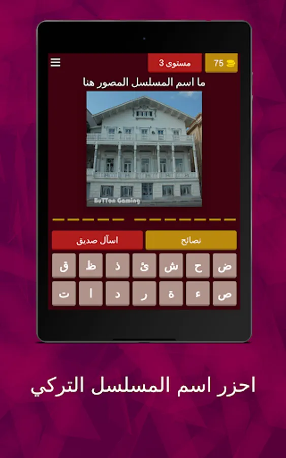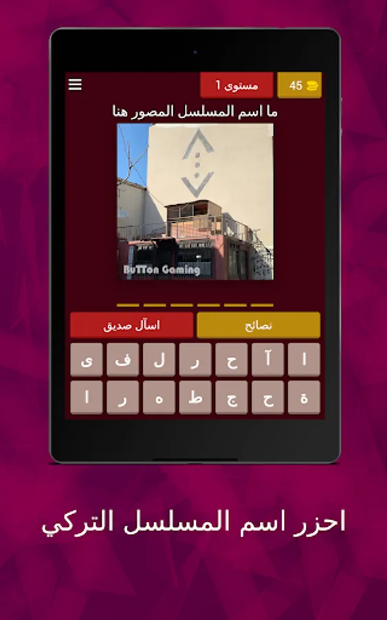 You must pass the stages, and each stage contains a scene and an indication of the series, whether the filming location or another is different. Any series that you will get to know, you will get points. The points that you will collect, you can use in the aids that the game provides you, such as excluding a letter or solving the question.