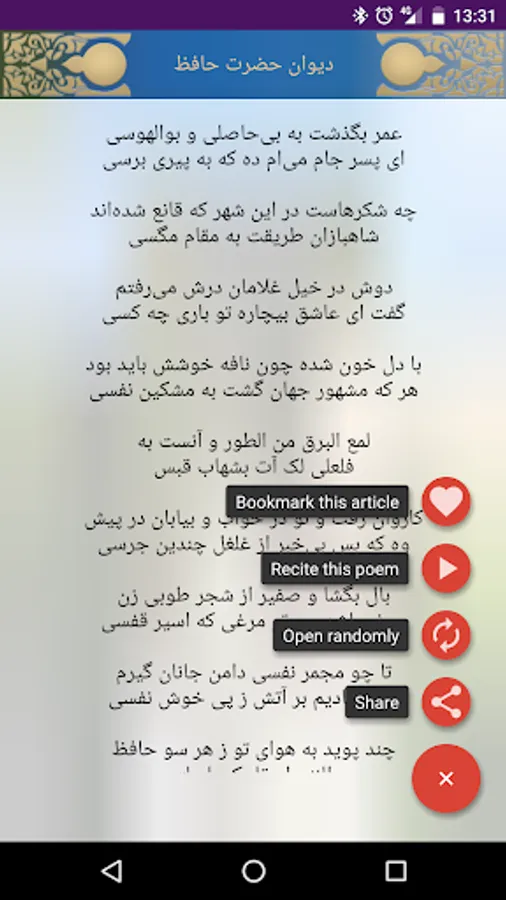 - Divan Hafiz Sherazi: (with audio)