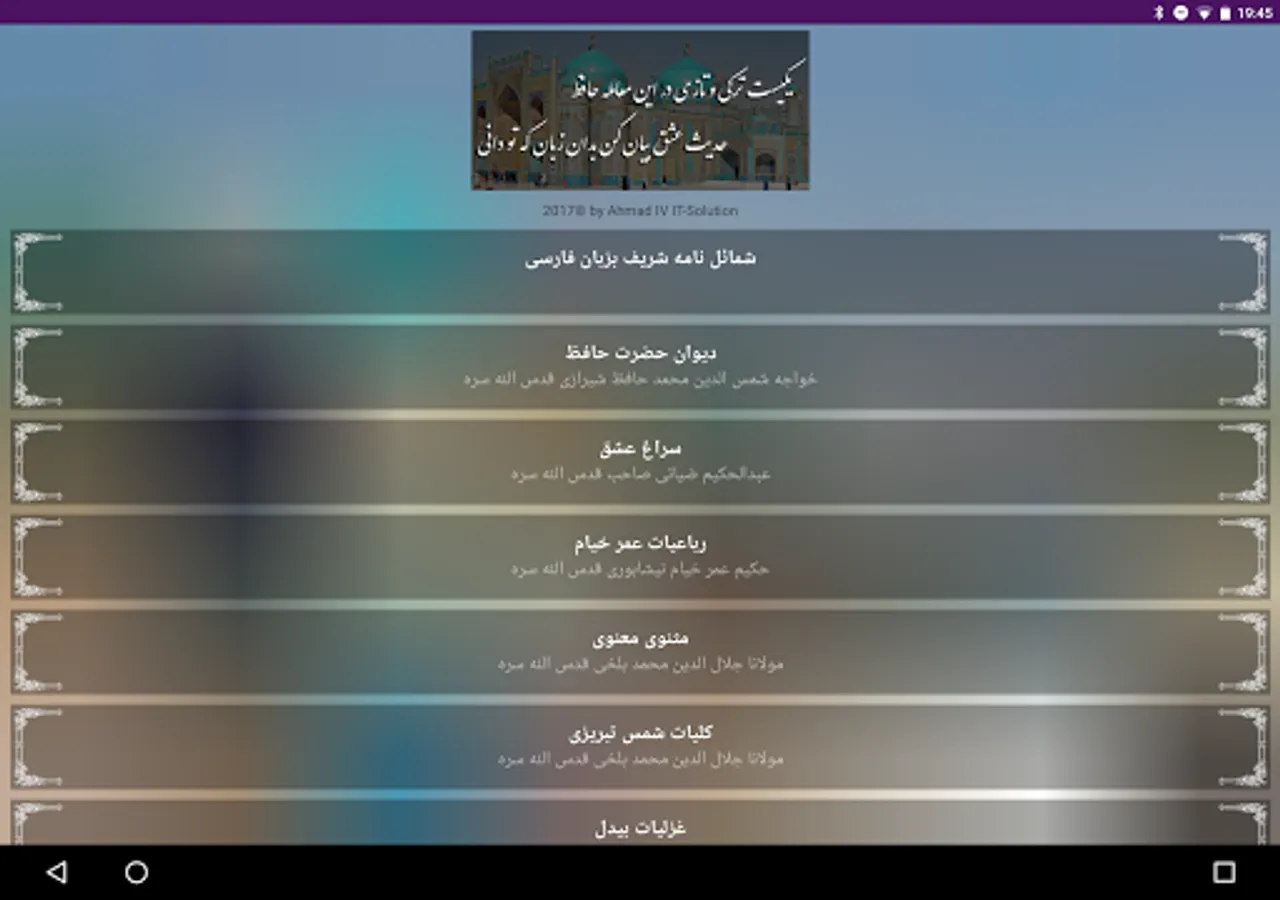 Contains all Love books, Ghazals, Poems, Sufi and Awlia Stories in Dari/Persian/Farsi.