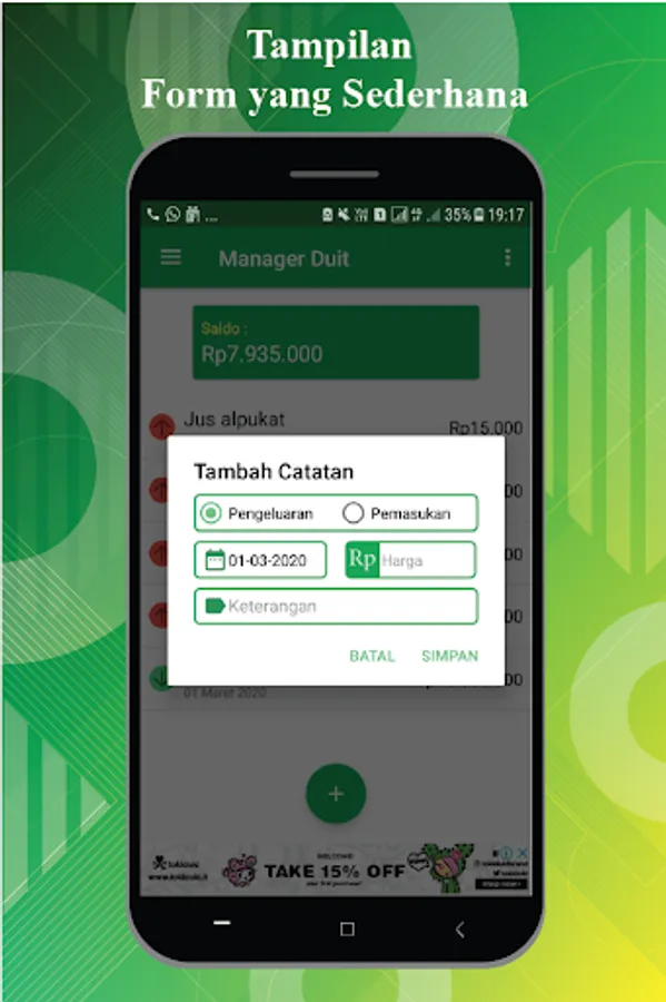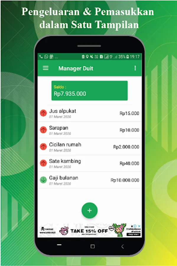 Money Manager is an application for easy recording and financial planning through one hand and also has an auto backup feature so users don't have to worry about losing data.