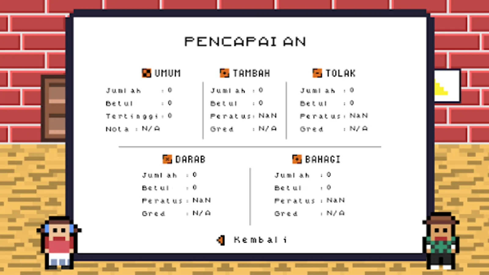 - Pencapaian seperti skor terkini, skor tertinggi, jumlah soalan betul, gred dan banyak lagi!