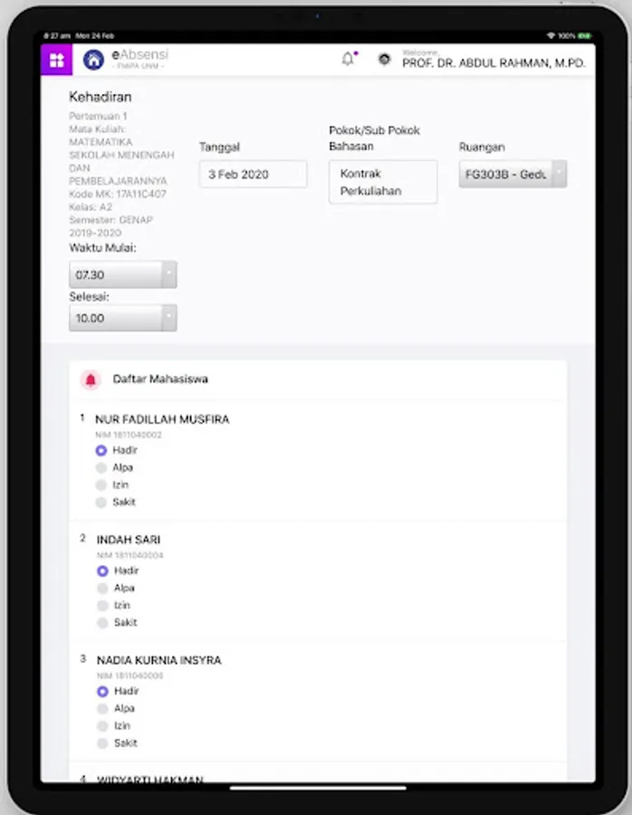 The Android-based FIP UNM Virtual Attendance System was developed by Ansari Saleh Ahmar.