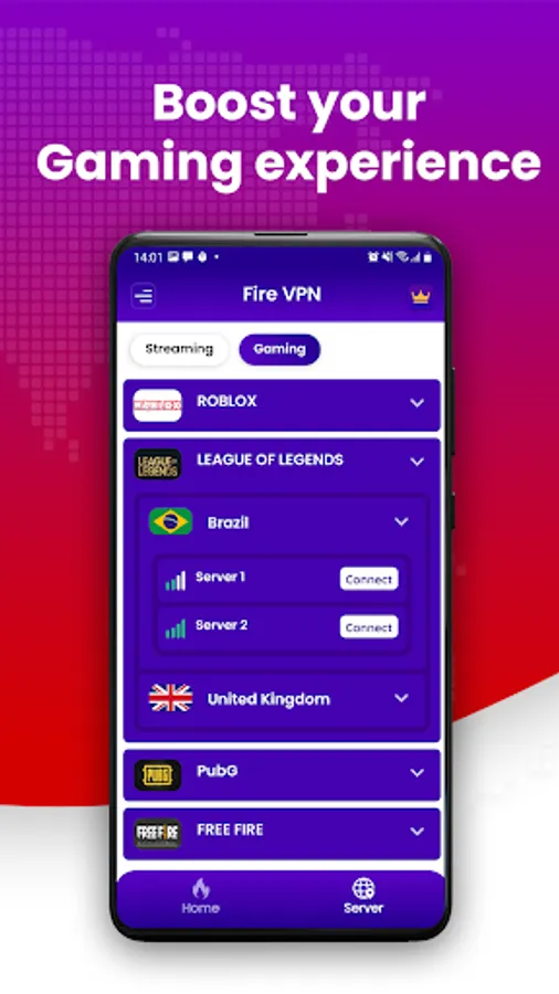 - Reduce game's latency and accelerate mobile games. Improve the gaming experience for PUBG, FreeFire, Mobile Legends, Roblox, etc.