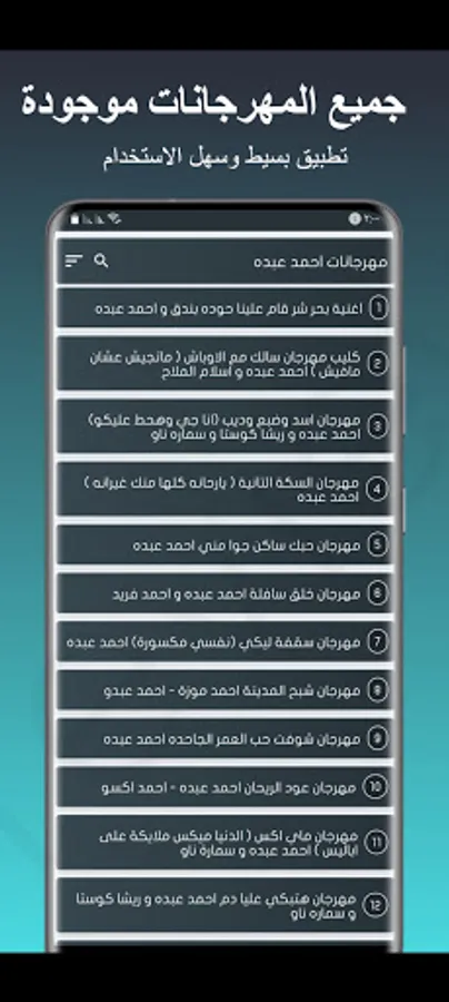 All festivals and songs (Ahmed Abdo) without the Internet, a simple, easy-to-use application and a small space