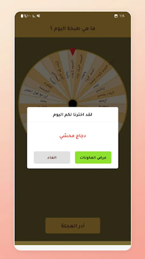 2- Click on the Recipe Wheel to suggest a recipe for today's cooking.