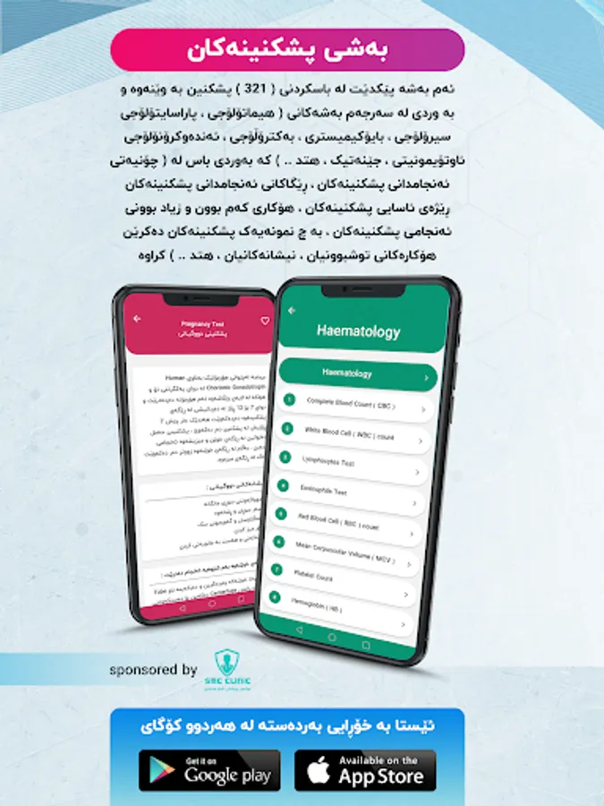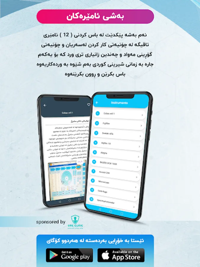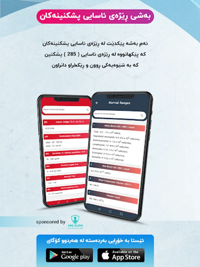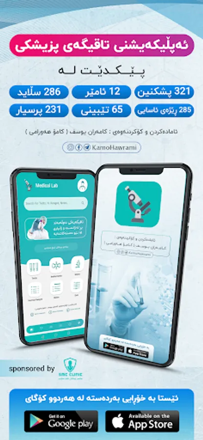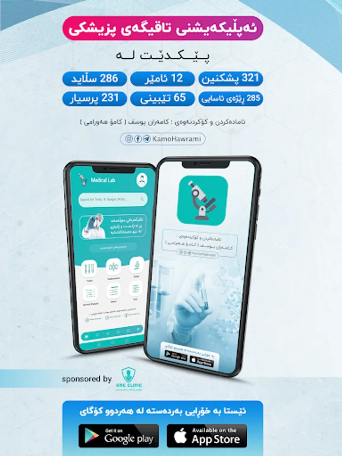 ئەپڵیکەیشنی Medical Lab ئەپڵیکەیشنێکی پزیشکی تایبەت بە تاقیگەی پزیشکیە و پێکدێت لە: