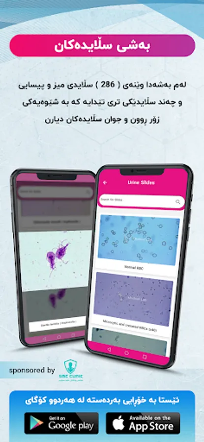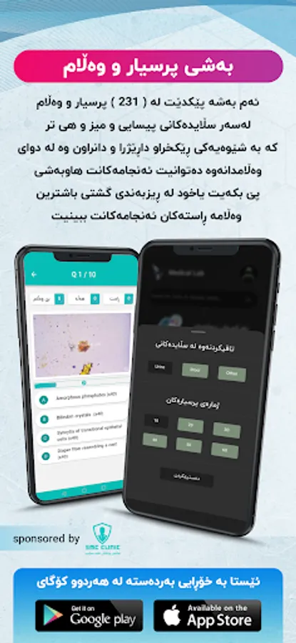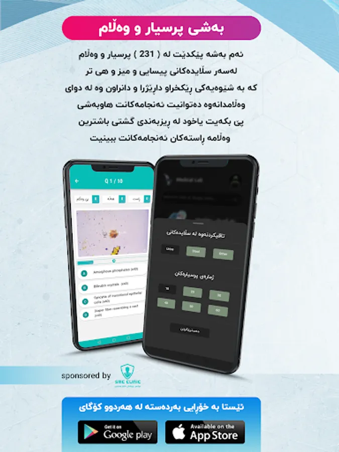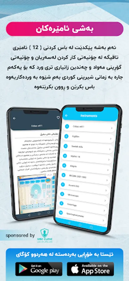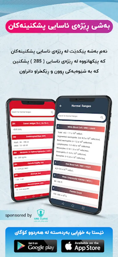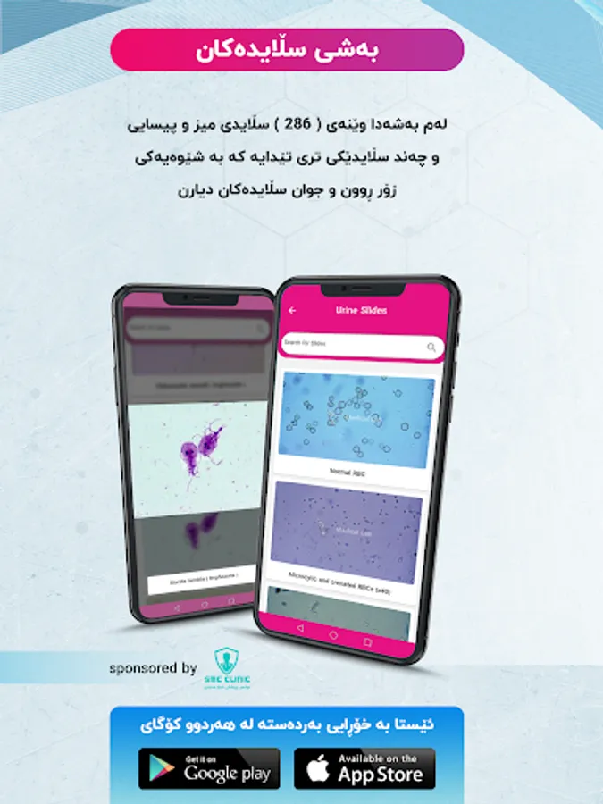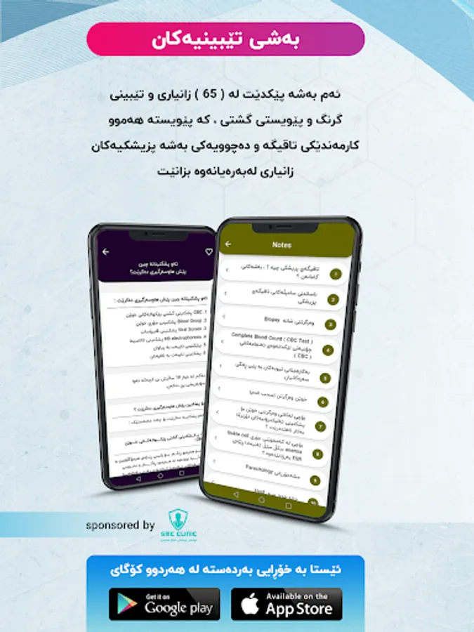 ئەپڵیکەیشنی Medical Lab ئەپڵیکەیشنێکی پزیشکی تایبەت بە تاقیگەی پزیشکیە و پێکدێت لە: