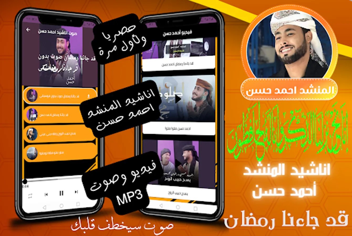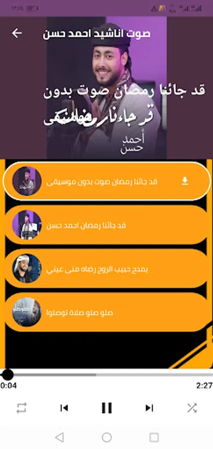 The singer Ahmed Hassan's application, Ramadan has come to us, allows you to hear and watch the songs of the singer Ahmed Hassan through your mobile phone easily and conveniently through one application that provides you with the most beautiful songs of the singer Ahmed Hassan, Ramadan has come to us without the net