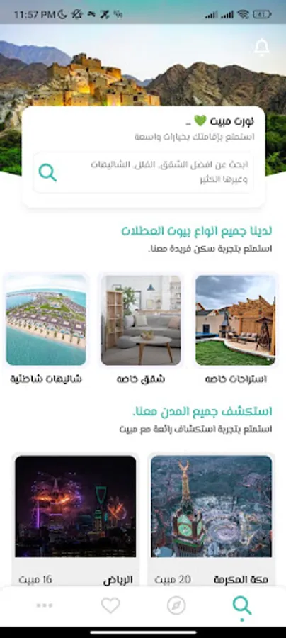 Mabeet is a platform licensed and approved by the Saudi Ministry of Tourism to rent private homes in all regions of the Kingdom, chalets, resorts, farms, camps, villas in Riyadh, Jeddah, Abha, Al-Baha, Dammam, Makkah