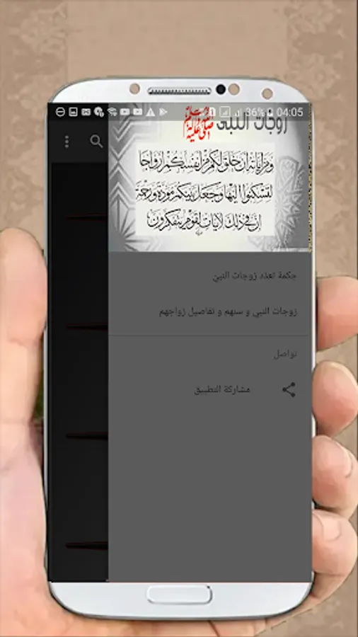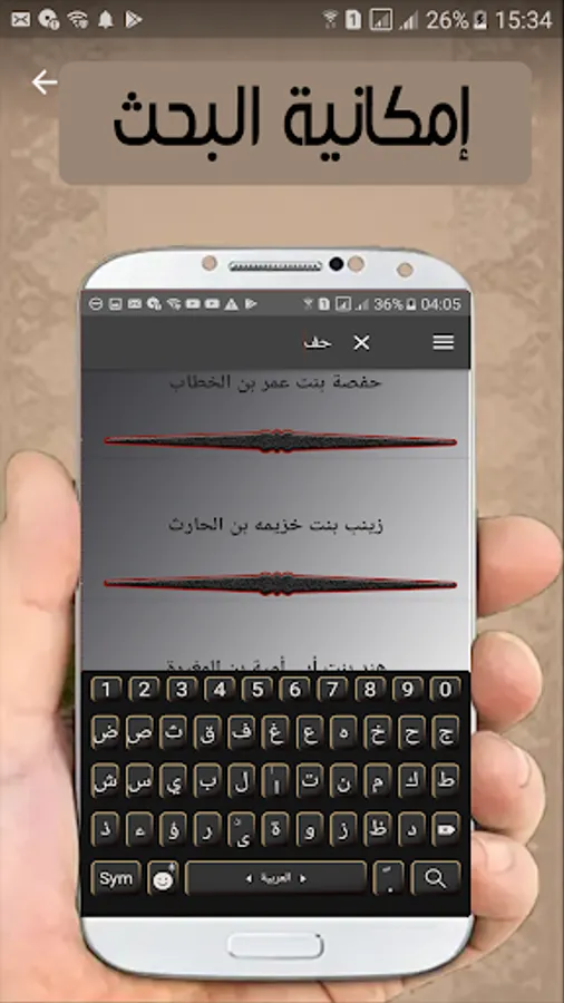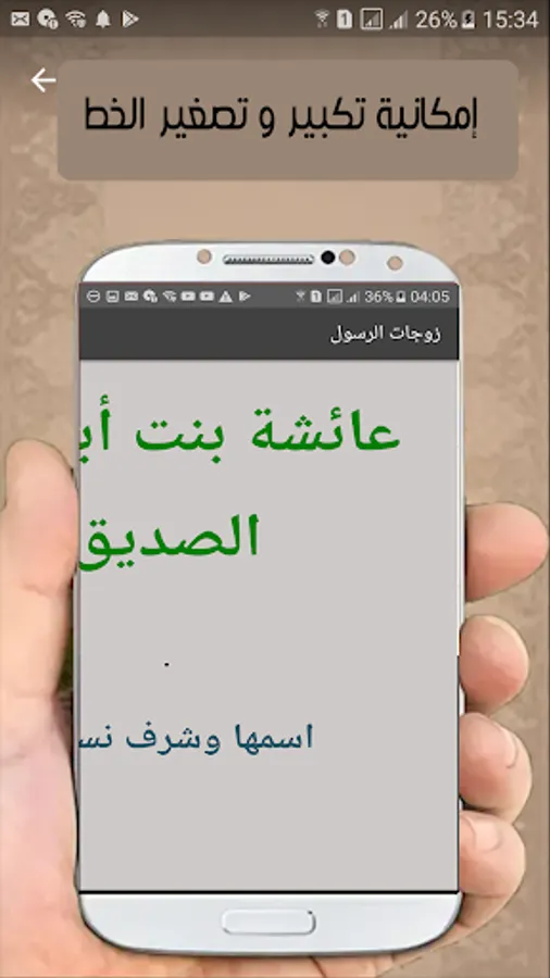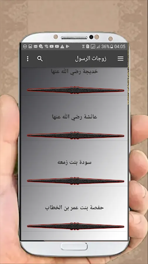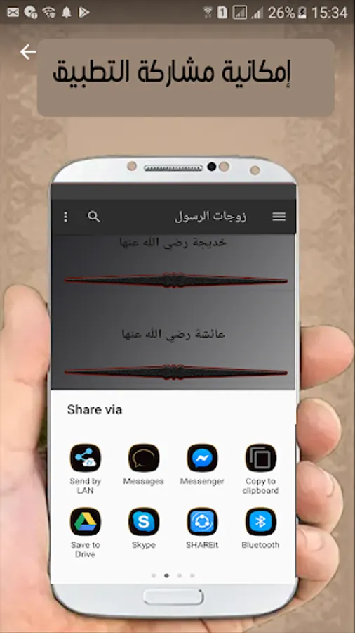 Application containing the names of wives of the Prophet in order with the date and the Hijri year with the possibility of: