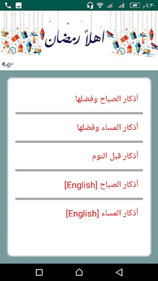 4- Morning and evening recitation of the morning and evening in Arabic and English
