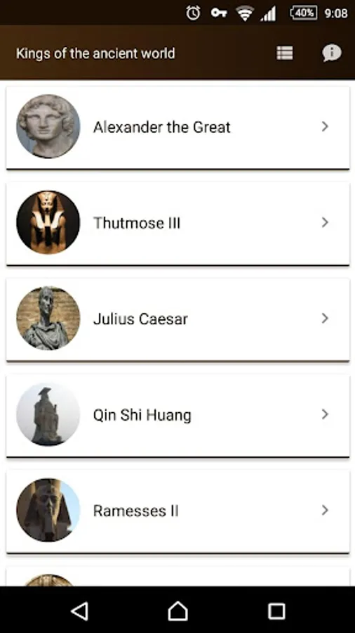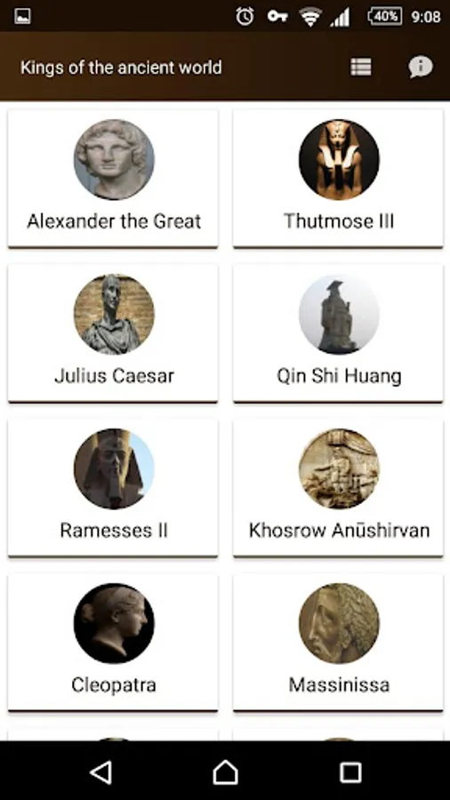 Dara I known in Greek sources as Darius I he one of the Achaemenid kings Cyrus the Great first of the Persian kings Trajan During his rule, many revolutions emerged the bloodiest were the Jewish revolution in North Africa Ur-Nammu founder of the Third Ur dynasty Shalmaneser III King of Asfourwhose details on a big black stone plateau in the British Museum Sennacherib King of the modern Assyrian Naram Sin Mithridates VI King of the Pontus Lugal Zage Si last Sumerian king Burebista King of the Getae and the Dacian iberian Pyrrhus General of the Hellenistic age king of the Greek Molocian dynasty Decebalus a Dacias king Muchet Thian the servant of the Imperial Palace