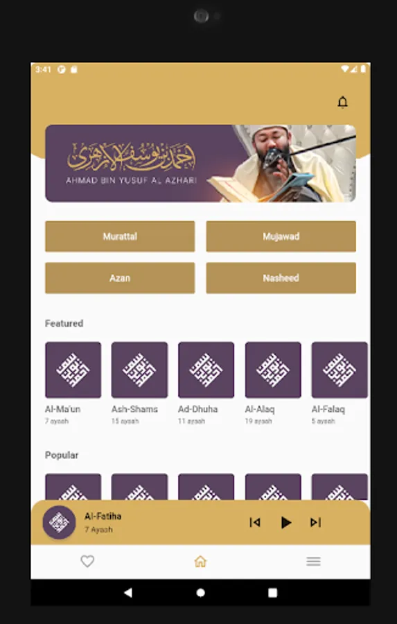 With Ahmad Yusuf App, now you can listen to Murattal, Mujawad, Azan & Nasheed in one app by World renewed Qari Sheikh Ahmad Bin Yusuf Azhari.