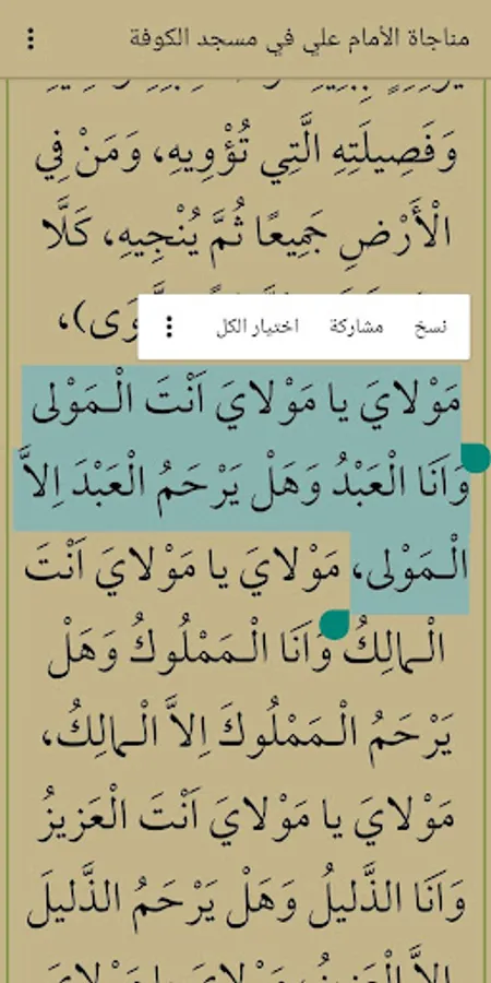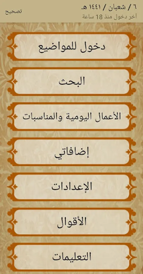 The application contains a collection of prayers and visits and communing and a set of Koranic prayers and daily program Loyalty praise counter and displays telling when each entry program