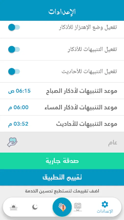 * Control the time when notifications appear to remind you to read the dhikr on time