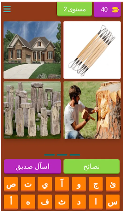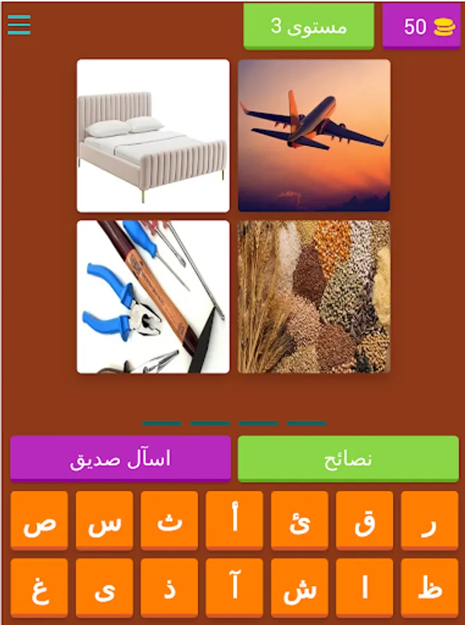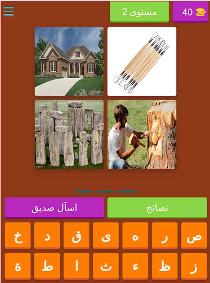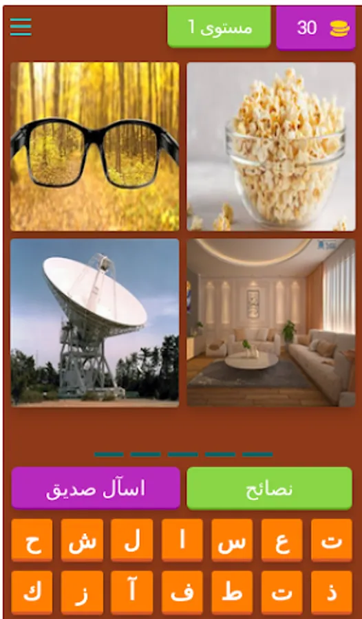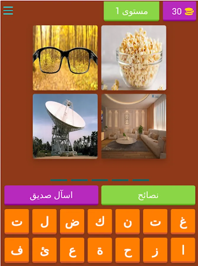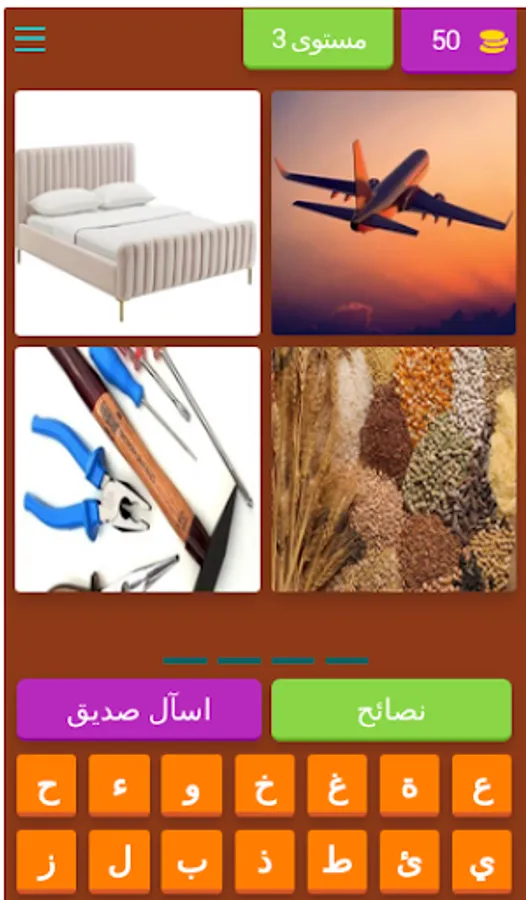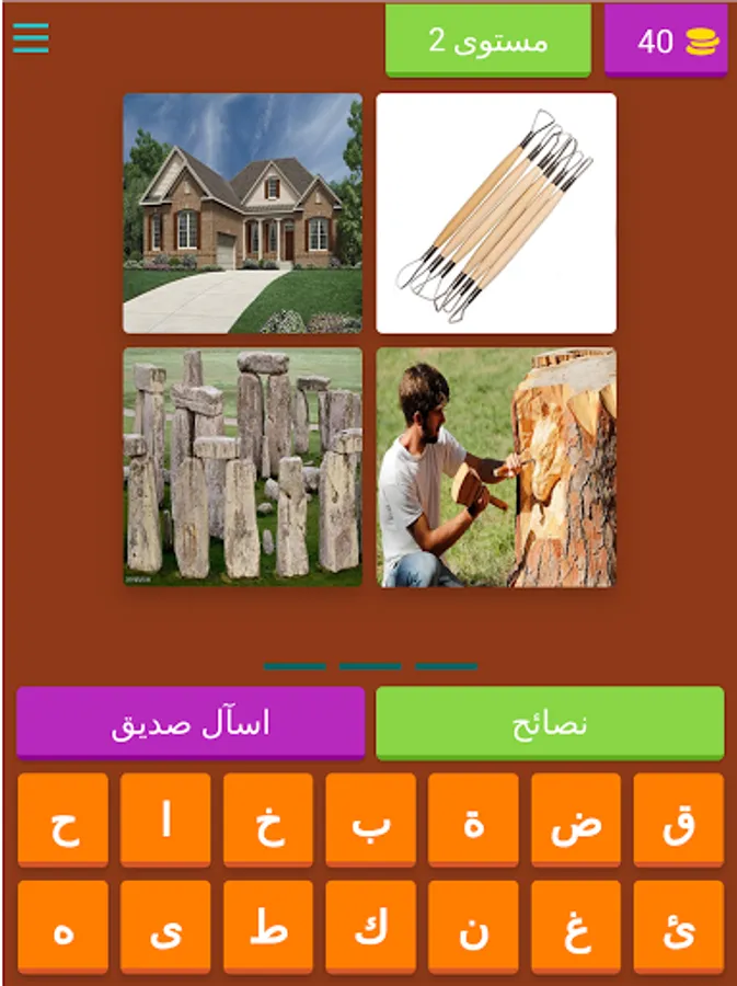 It is four pictures linked by one word, as it is a beautiful and interesting game that aims to develop the player's auditing and thinking skills and develop the Arabic language vocabulary. The game requires concentration and a close look to know the correct answer, and in the event that you falter in the presence of the solution, you can use any of the means available in the game to bring the solution closer to the player.