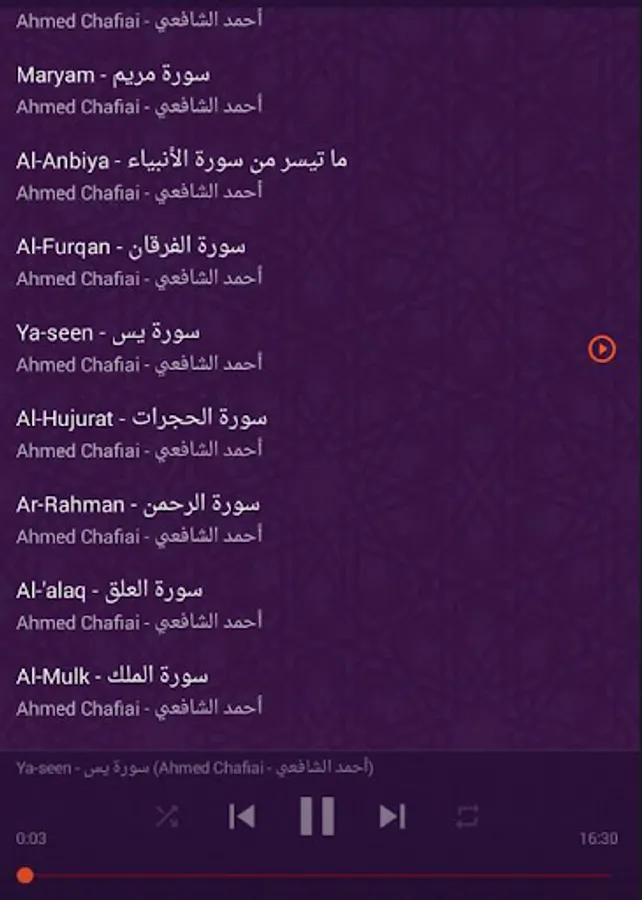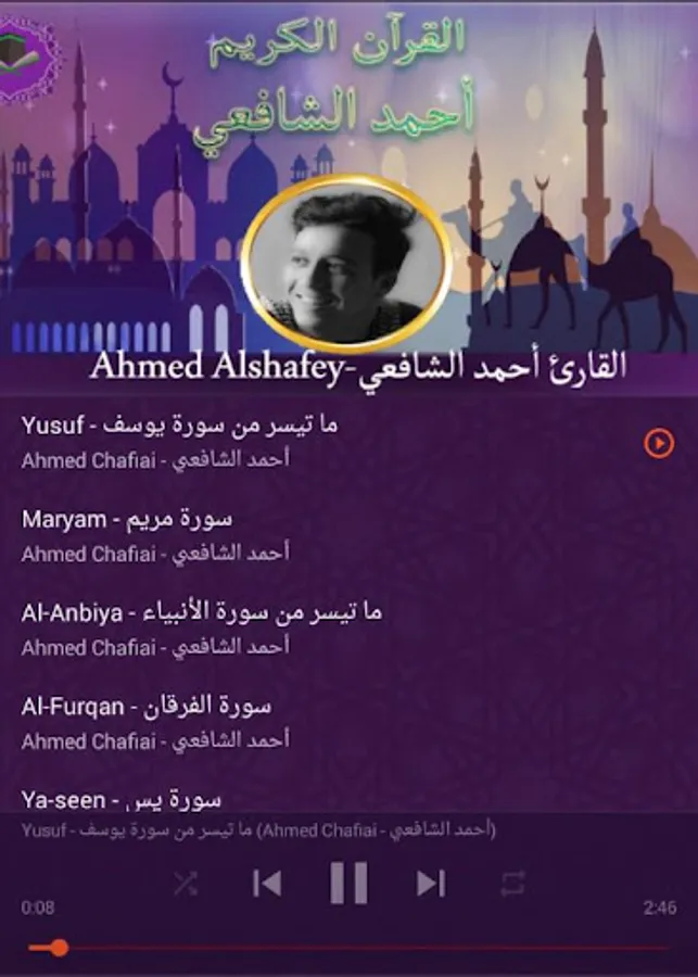 The application of the Noble Qur’an to the reciter Ahmed Al-Shafi’i