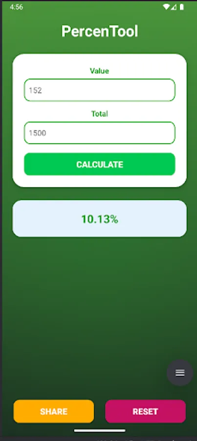 PercenTool is your simple, fast percentage calculator. Just enter any value and total to see the percentage instantly—no complex math required! Whether you’re tracking progress, calculating grades, finances, or discounts, PercenTool makes it easy.
