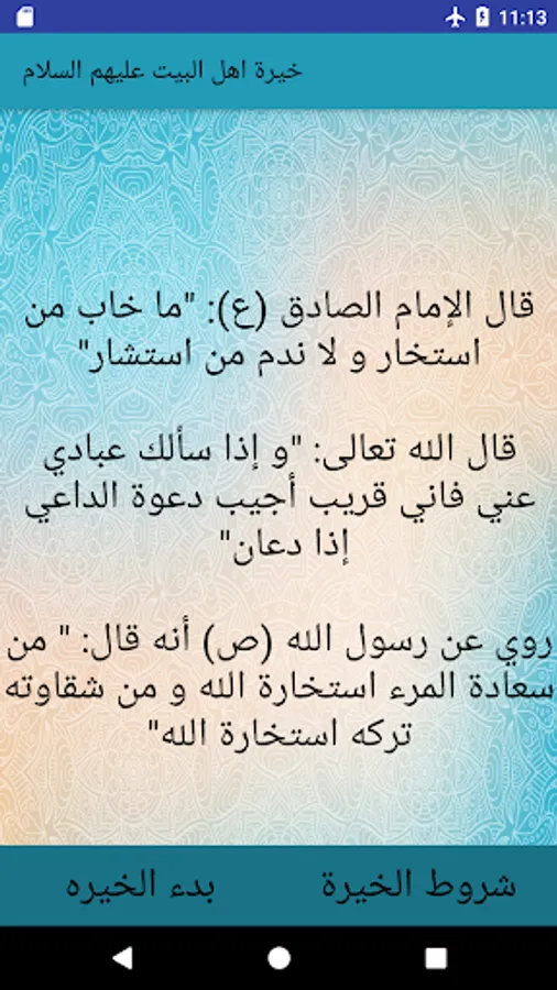 This application Amkinkk know the correct way of the finest Ahl al-Bayt (peace be upon them), as reported from Imam Sadiq peace be upon him, in addition highlights and shows you this application is important and preferred istikhaarah in general Mtelma including Ahl al-Bayt, and Kdalk shows the correct way to work istikhaarah simple its steps .