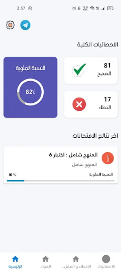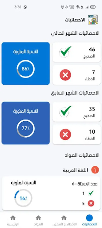 An educational application that contains exams for all subjects with the ability to specify the semester and statistics for performance according to each subject, as well as general statistics for the current month and the previous month.