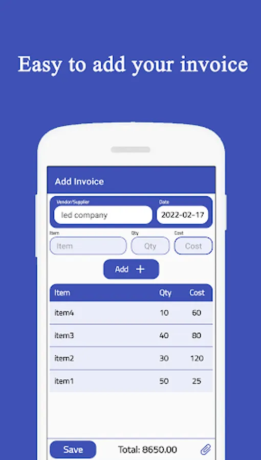 Why you keep a lot of papers to know and remind items cost. Now with Smart Invoice App you can keep all your invoices in your phone in an e invoice.