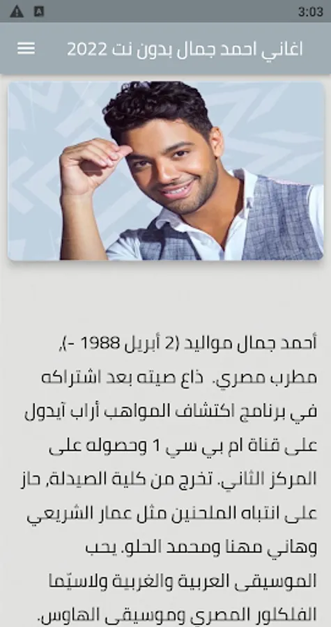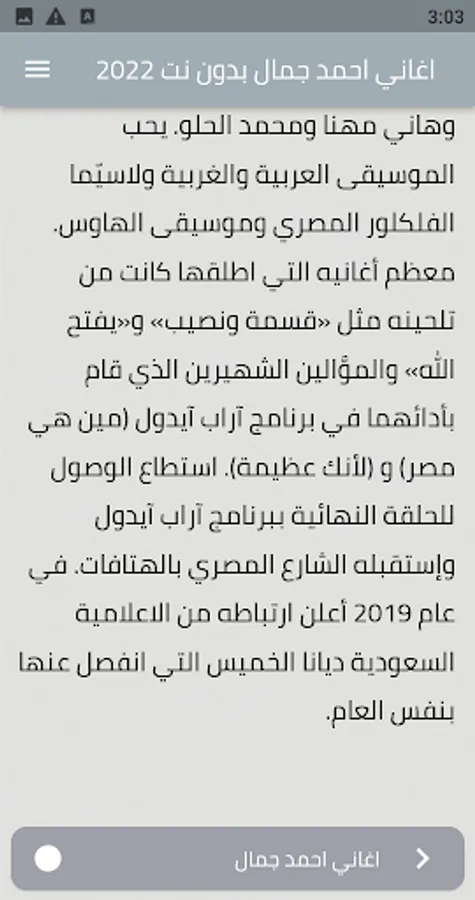 Use the application of all Ahmed Gamal songs without the net 2022, and enjoy the optimal experience in applying all the songs of Ahmed Gamal without the net 2022 on your mobile phone.