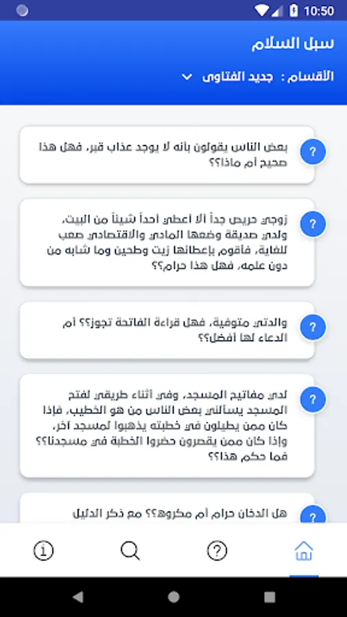 An application containing the new fatwas that were answered by the virtue of Dr. Salman bin Nasr Al Daya