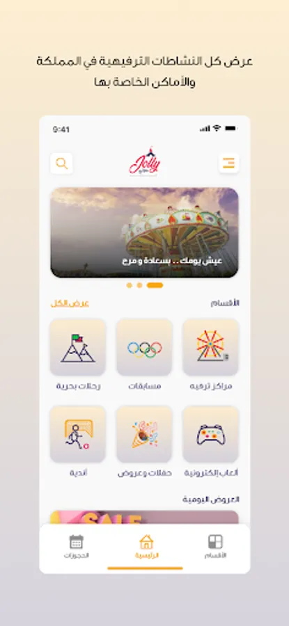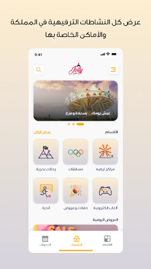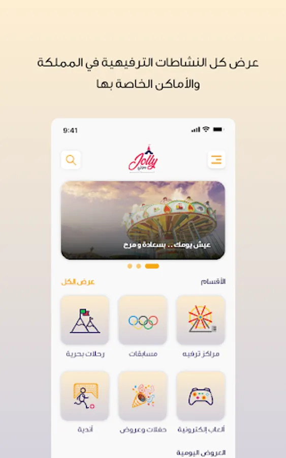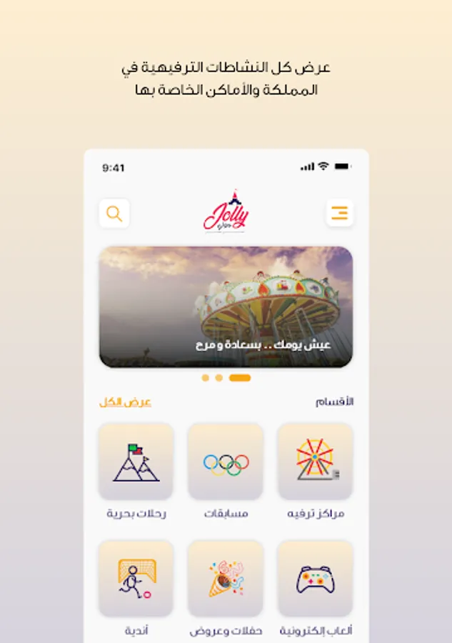 Where are you going out today! Jolly application provides you with a range of entertainment services in the Kingdom of Saudi Arabia, where it has provided the best entertainment venues (electronic games - cruises - clubs - parties and shows) carefully and accurately to be your first choice